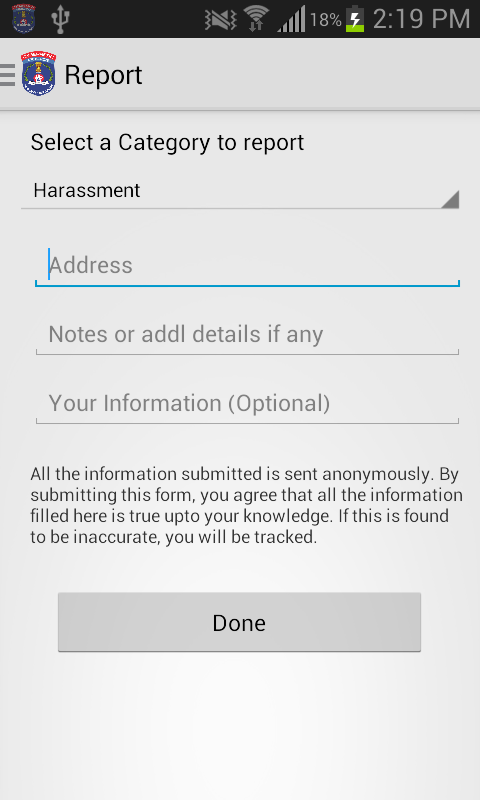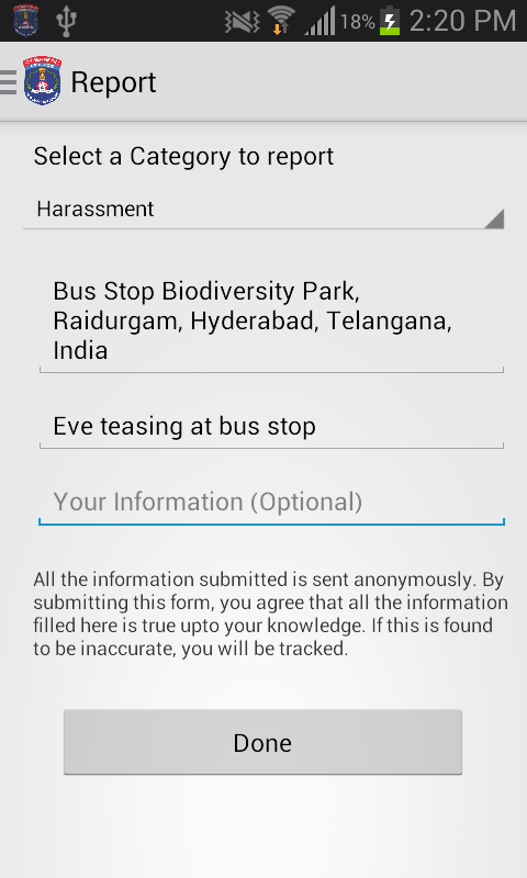 Bringing an end to harassment and sensitizing individuals about harassment. Removing the taboo for women to register complaints against issues ranging from domestic violence to eve teasing. Including geolocation so that the police can respond immediately.